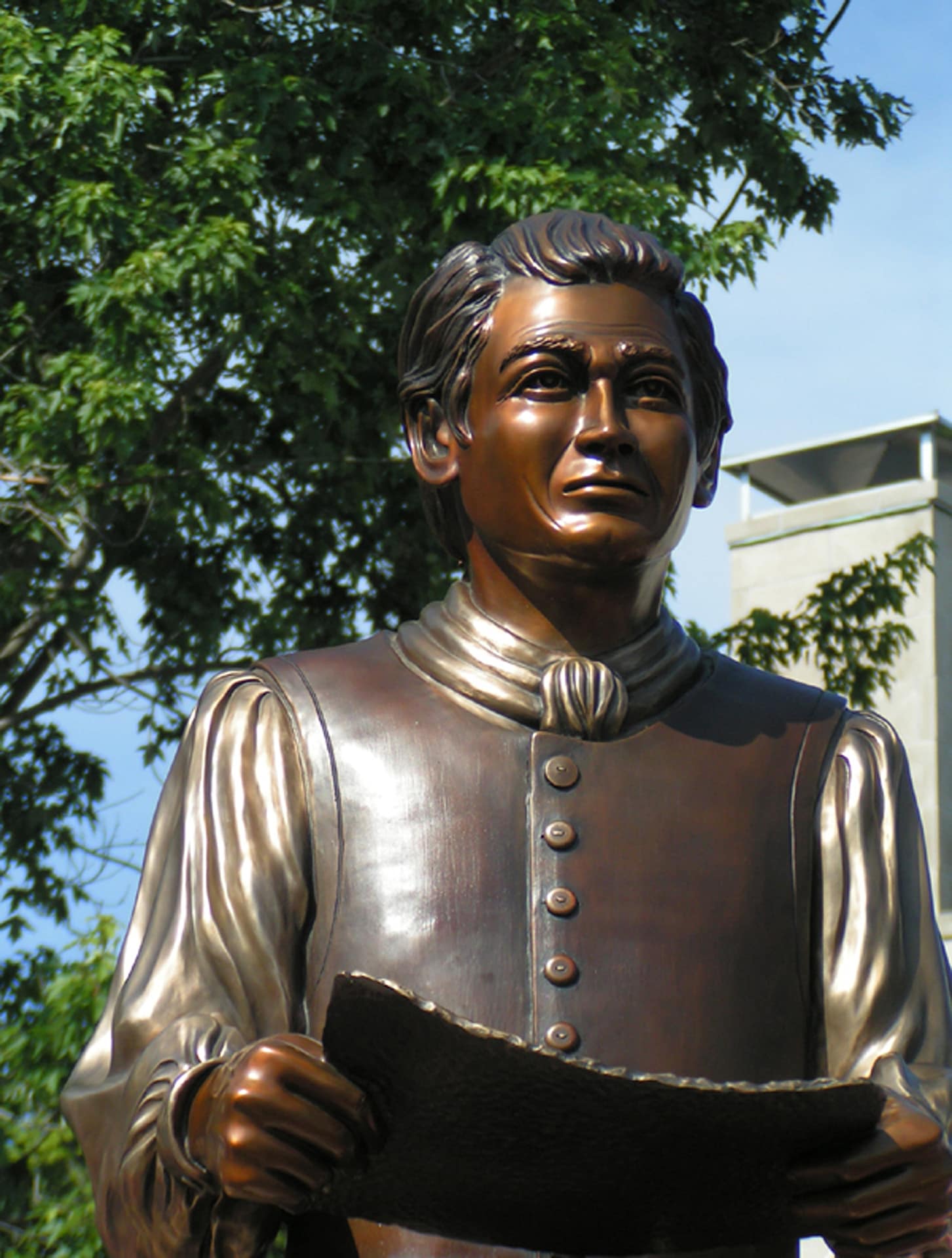 In April 2005 I was asked to present some ideas for a sculpture for the Bicentennial of Eaton, Ohio, founded by William Bruce in 1906. I did some research and completed sketches and contacted three Foundries for bids on the project. I presented the sketches and a proposal and received the authorization to proceed. The following day, after getting the ‘go ahead’, I made a visit to Mound Hill Cemetery and located the grave of William Bruce. I made a commitment to William that day, that I would try my very best to represent him and his founding spirit in the form of a bronze sculpture that would represent his vision for Eaton, Ohio.